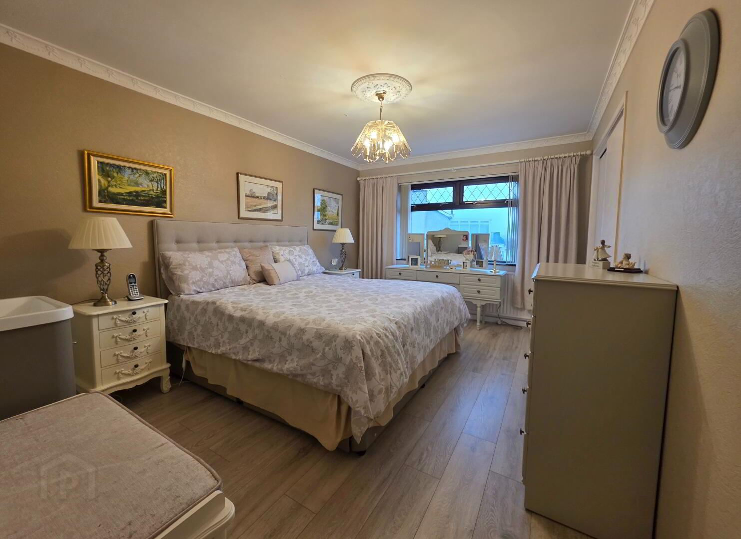13'0 x 10'7 With laminate wooden floor, built-in double wardrobe.