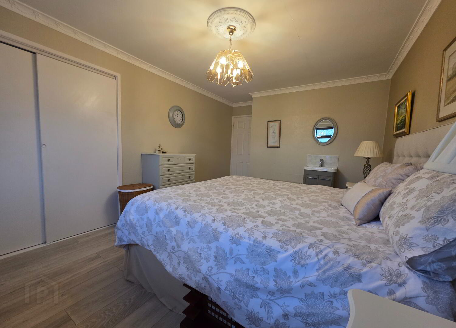 12'3 x 10'0 (measurement include ensuite facility) ensuite comprises walk-in shower cubicle having 'Mira' electric shower system, w.c. and wash hand basin, fitted wall mirror with LED light, tiled floor, part tiled walls.
