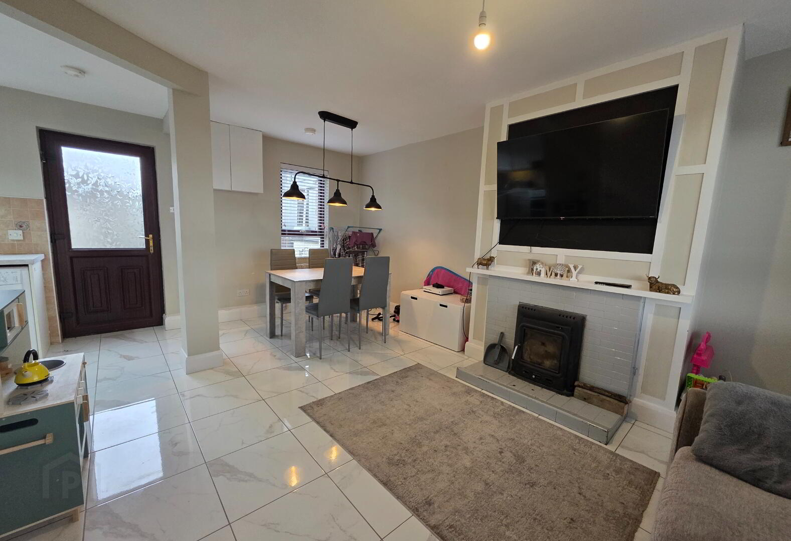 18'0 x 12'0 With feature black cast iron enclosed fire set on a black tiled hearth, marble effect tiled floor, high level television point.