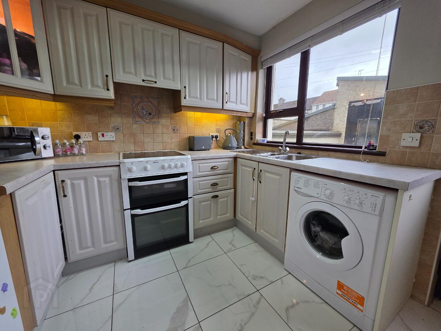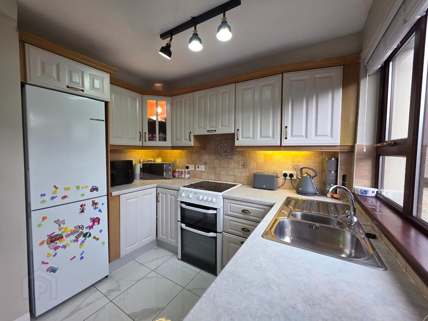 9'0 x 6'5 With an extensive range of fully fitted eye and low level units incorporating a single drainer stainless steel sink unit, glazed display unit, saucepan drawer, space for free standing cooker, space for free standing fridge, extractor fan with light, concealed lights under units, tiled between eye and low level units.