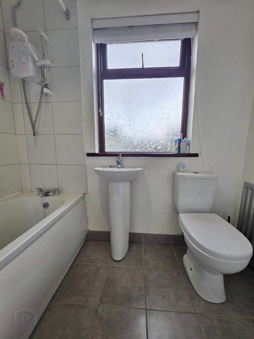 7'4 x 5'8 With white suite, 'Triton Seville' electric shower over bath complete with curtain.