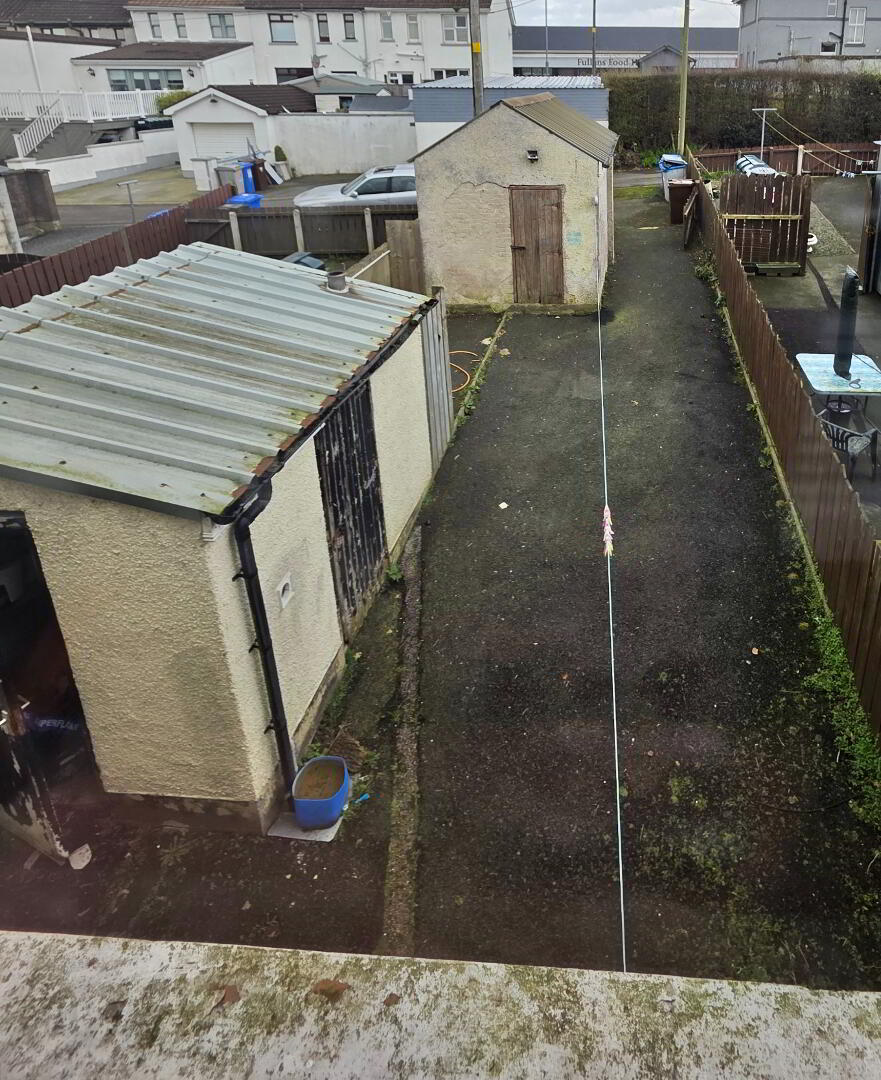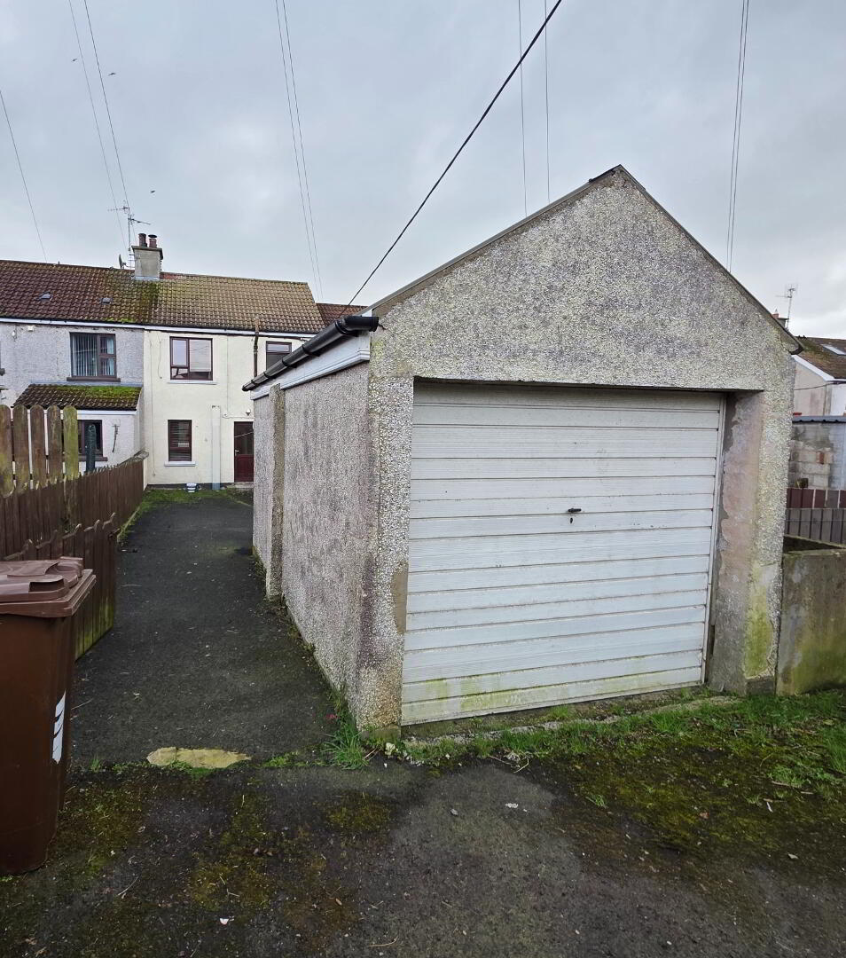 Open fronted concrete yard/parking area to front with panelled fence to sides. Fully enclosed yard to rear with general purpose store and detached garage with roller door with access onto shared laneway. Outside watertap.
