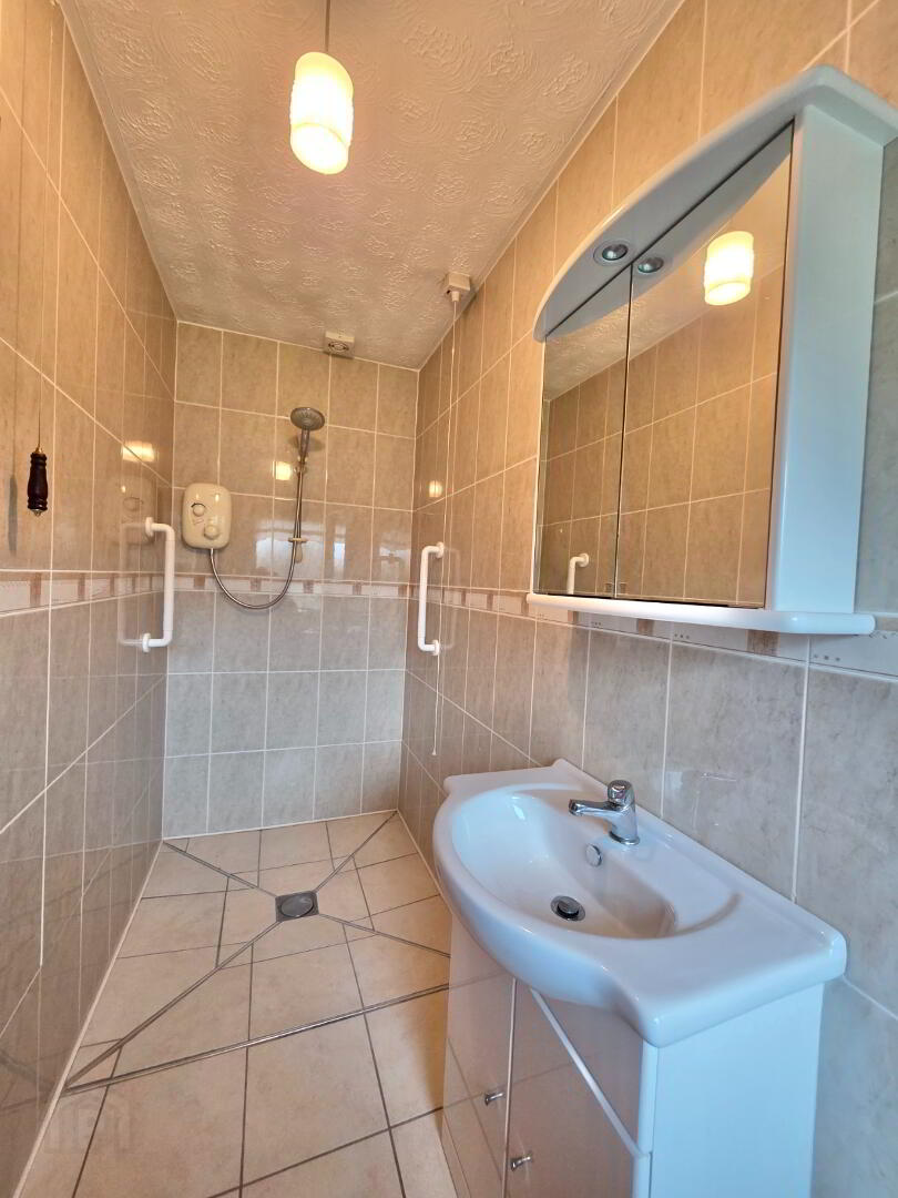 12'0 x 11'0 With built-in bedroom furniture comprising 2 x double wardrobes, bedside lockers, corner unit and television shelf. Ensuite facility comprising wet room styled shower complete with 'Mira' Events electric shower system, w.c. and vanity unit, tiled floor, fully tiled walls, fitted mirror fronted bathroom cabinet, chrome wall mounted heated towel rail.