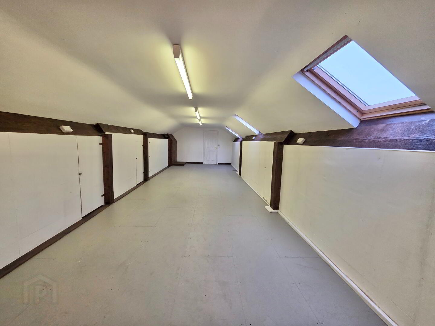 With wooden floor, strip lighting and power point access via turned staircase in Integral garage.