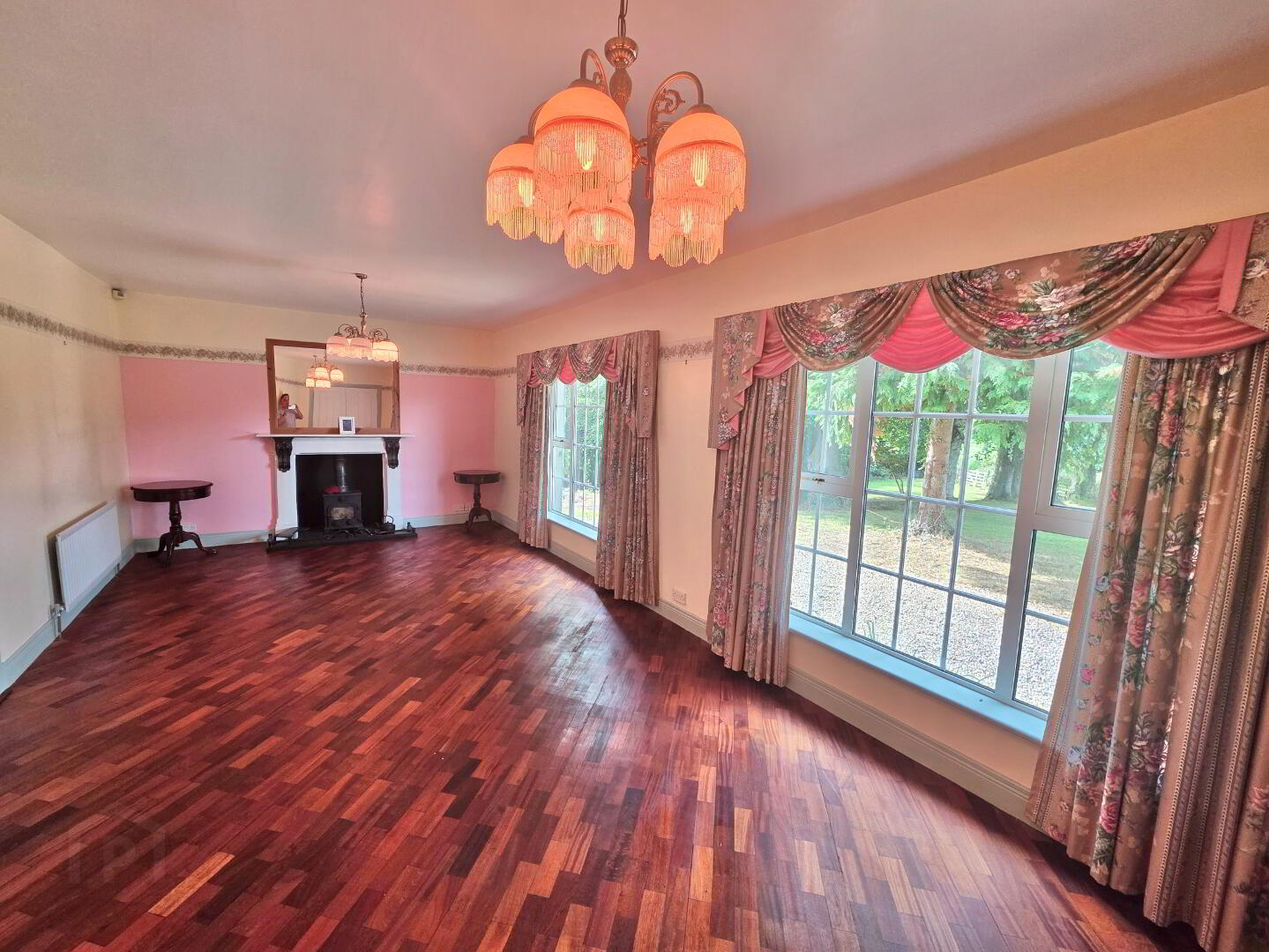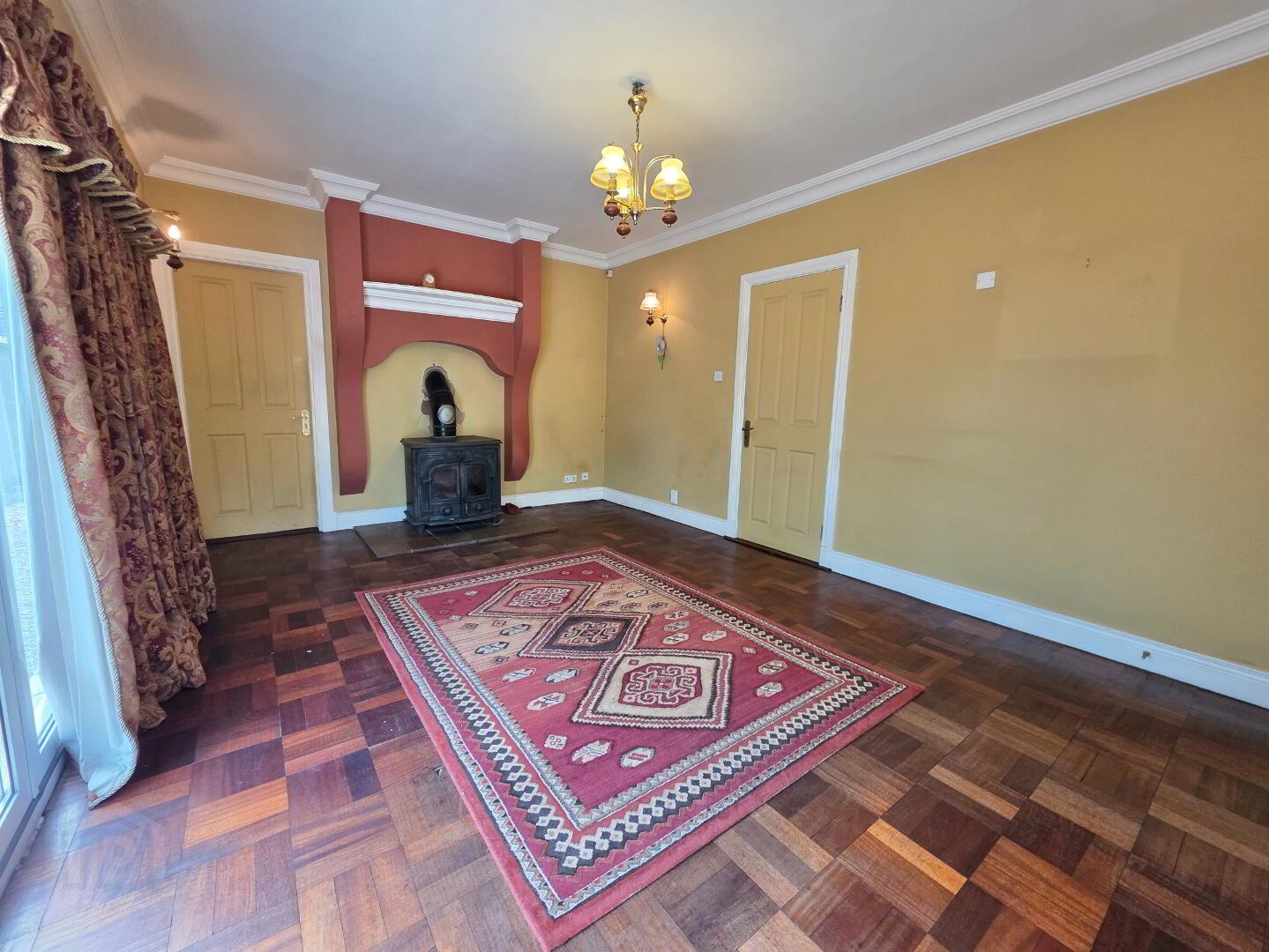 26'2 x 12'1 With feature inglenook styled fireplace having a black cast iron multi-fuel stove set on a black slate hearth and finished with an ornate painted cast iron fire surround, 'Parquet' wooden floor.