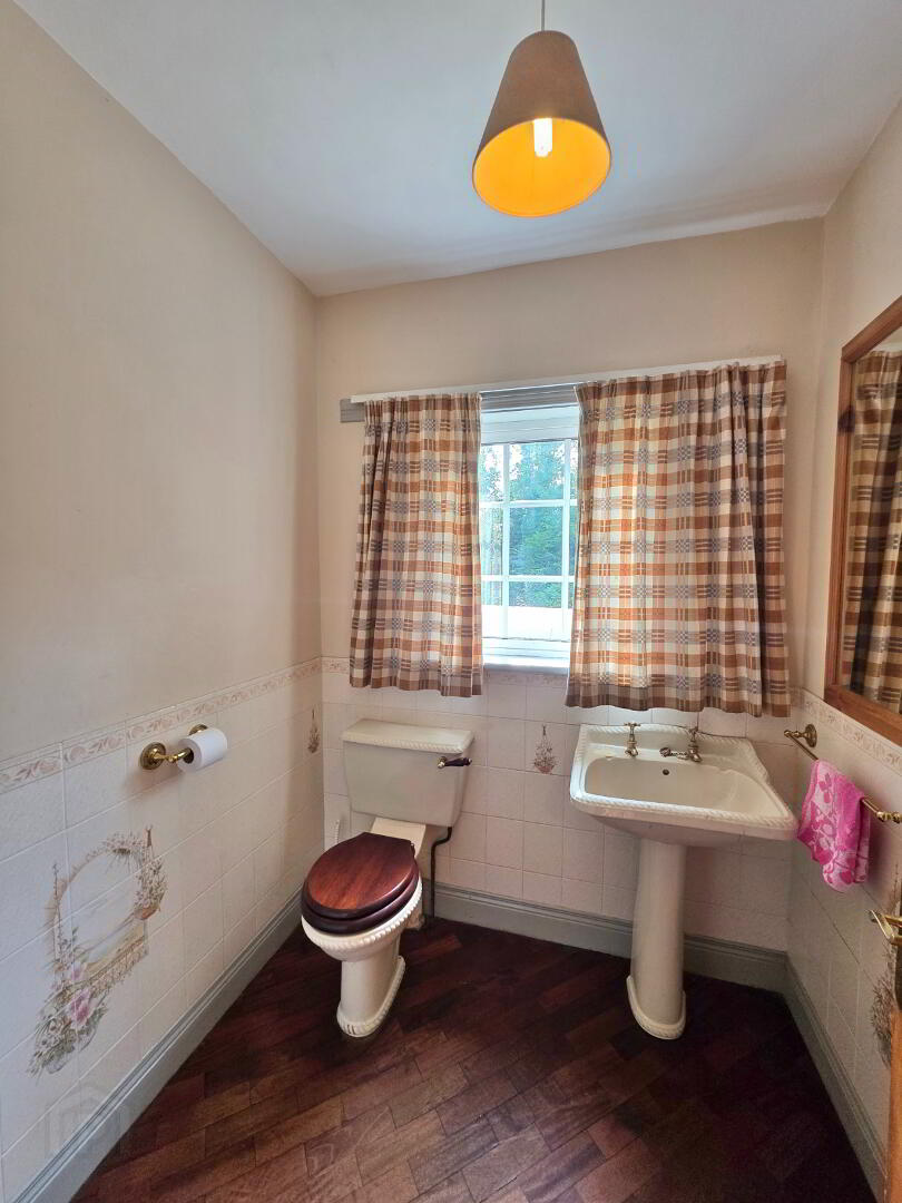 9'9 x 6'9 With original enamel bath tub, w.c. and wash hand basin, half tiled walls.