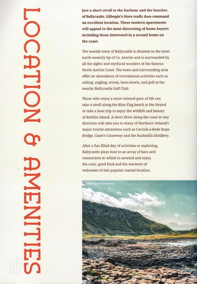 LAST ONE REMAINING - 'Gillespie's Store' Clare Street, Ballycastle - £169,950 To Include Parking Space. A Stunning Modern 2 Bedroom Apartment Finished To A High Quality Turnkey Specification.